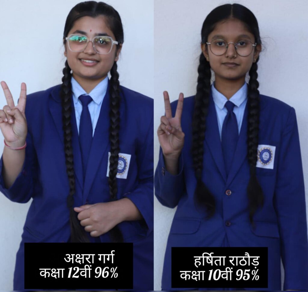 कक्षा दसवीं की छात्रा हर्षिता राठौड़ पिता सुनील राठौड़ ने 95% अंक प्राप्त कर उत्कृष्ट प्रदर्शन किया। वहीं कक्षा बारहवीं की छात्रा अक्षरा गर्ग पिता राजीव गर्ग ने 96% अंक अर्जित कर धार जिले की मेरिट सूची में प्रथम स्थान प्राप्त किया।