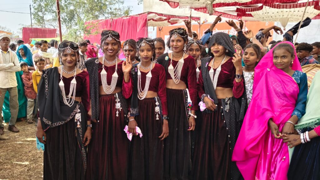 रिंगनोद। आदिवासी अंचल में इन दिनों भगोरिया का उल्लास अपने चरम पर हैं। गुरुवार को रिंगनोद के भगोरिया में आदिवासी पंरपरा का अनूठा संगम दिखा। पारंपरिक वेशभूषा व चांदी गहनों में सज-धजकर पहुंची युवतियां मांदल की थाप पर जमकर थिरकती हुई नजर आई। वही युवा वर्ग भी मांदल की थाप व बांसुरी की धुन पर नाचते झूमते दिखे। सुदूर ग्रामो से अपने मांदल को श्रृंगारित कर पहुंचे आदिवासी समाजजनो ने आदिवासी संस्कृति को जीवंत कर दिया। भगोरिया में खान- पान की दुकानों के साथ ही महिलाओं की श्रृंगार की दुकान पर भी भीड़ दिखी।