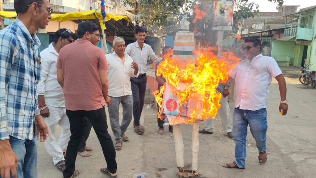दसाई। मध्यप्रदेश की विधानसभा में कैबिनेट मंत्री कैलाश विजयवर्गीय द्वारा नेता प्रतिपक्ष उमंग सिंघार पर की गई टिप्पणी के विरोध में कांग्रेस पार्टी द्वारा जिले में जगह-जगह प्रदर्शन किए जा रहे हैं। दसाई में ब्लॉक कांग्रेस कमेटी के कार्यकर्ताओं द्वारा विरोध प्रदर्शन करते हुए मंत्री कैलाश विजयवर्गीय का पुतला दहन किया गया। इस दौरान कांग्रेस कार्यकर्ताओं द्वारा मंत्री विजयवर्गीय के विरुद्ध जमकर नारेबाजी करते हुए इस्तीफे की मांग की गई।