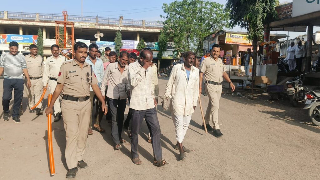 नरेंद्र पँवार @ दसाई। ग्राम कपास्थल में पुलिस पर हमला करने वाले 9 लोगों को दसई चौकी पुलिस टीम ने गिरफ्तार कर लिया है। मामले में बाकी आरोपी अब भी फरार हैं। जिनकी तलाश पुलिस टीम द्वारा की जा रही हैं। वही गिरफ्तार आरोपियों का दसाई में पुलिस द्वारा जुलूस भी निकाला।