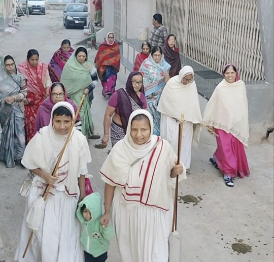 रिंगनोद – सांसारिक जीवन त्याग कर 10 वर्षों बाद प्रथम बार ग्रह ग्राम पहुंचने पर साध्वीयों का समाज जनों ने किया भव्य स्वागत