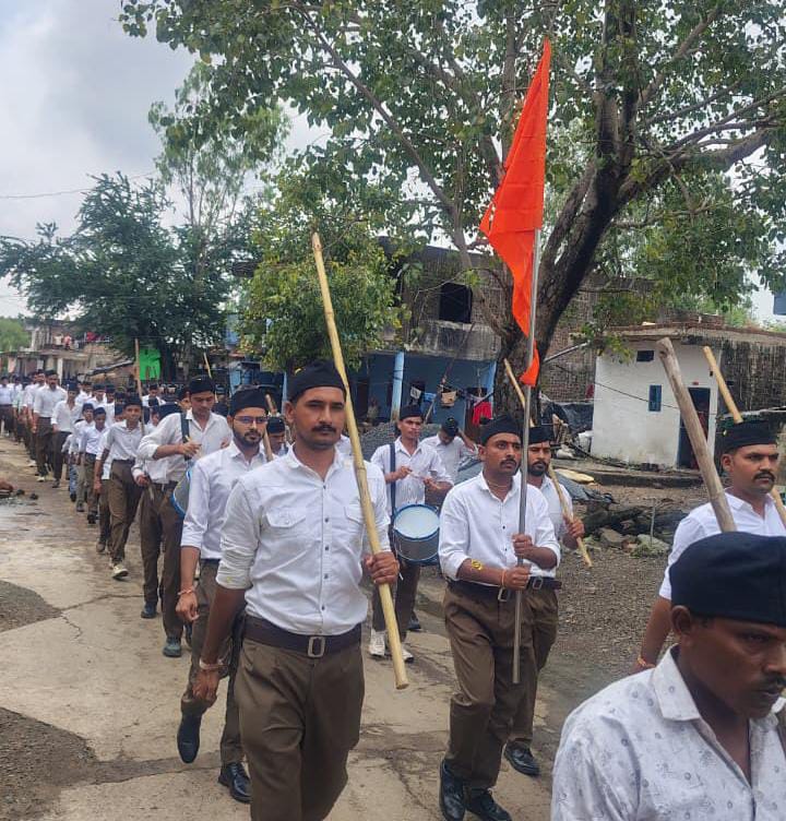 राजगढ़ – राष्ट्रीय स्वयंसेवक संघ के गुमानपुरा व पिपरनी मंडल का पथ संचलन निकला, कदमताल करते हुए निकले स्वयंसेवक, जगह-जगह हुआ स्वागत