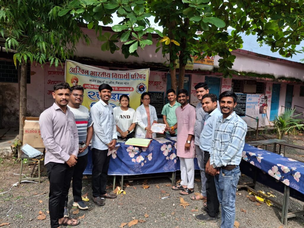 सरदारपुर। अखिल भारतीय विद्यार्थी परिषद राजोद द्वारा अभाविप के 77वे स्थापना दिवस के उपलक्ष्य में रक्तदान शिविर का आयोजन कन्याशाला स्कूल बस स्टैंड राजोद में किया गया। जिसमें धार विभाग संगठन मंत्री संदीप राजपूत व राष्ट्रीय कार्यकारिणी सदस्य गौरव साहू द्वारा माँ सरस्वती ओर स्वामी विवेकानंद के चित्र के समक्ष दीप प्रज्वलित कर रक्तदान शिविर का शुभारंभ किया गया।