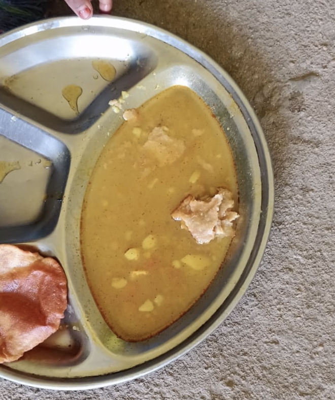 सरदारपुर क्षेत्र में सरकारी दावों के बावजूद ज़मीनी हकीकत कुछ और बया कर रही है। स्कूलों में छोटे छोटे बच्चों को मिलने वाला पौष्टिक मध्यान भोजन स्कूलों में मीनू अनुसार अधुरा मिल रहा है। मंगलवार को राजगढ संकुल के जन शिक्षक एवं एमडीएम प्रभारी के क्षेत्र के ग्राम कुमाररुडी के प्राथमिक स्कूल में मंगलवार को मध्यान भोजन में मिलने वाली खिरपुडी के स्थान पर चावल, कड़ी बच्चों को मिली। वहीं भवन जर्जर भवन की छत से बारिश के दिनो मे पानी का रिसाव अधिक होने से छत के नीचे बरसाती (पन्नी) बांध कर बच्चों को अध्यापन कार्य करवाया जा रहा है साथ ही छोटे छोटे बच्चो को मंगलवार को मिनु अनुसार खीर पुड़ी मिलना चाहिए थी। लेकिन यहां लापरवाही के चलते बच्चों को केवल चावल कड़ी उपलब्ध होने से मासूम चावल कड़ी ही खाते दिखाई दिए।
