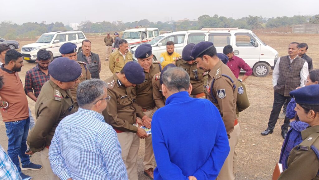 हेलीपैड से लेकर कथा स्थल तक तैनात रहेंगे पुलिस जवान, SP व ADM ने देखी व्यवस्था
