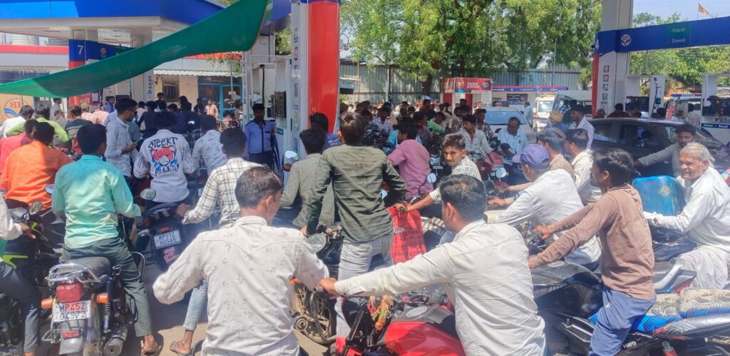 राजगढ़। नगर सहित क्षेत्र में पेट्रोल और डीजल की कमी को लेकर मंगलवार देर शाम से फैली अफवाह के बाद हड़कंप मच गया। बुधवार सुबह से ही क्षेत्र के सभी पेट्रोल पंपों पर दो पहिया व चार पहिया वाहनों की भीड़ देखने को मिली। यह स्थिति देर शाम तक ऐसी ही रही।