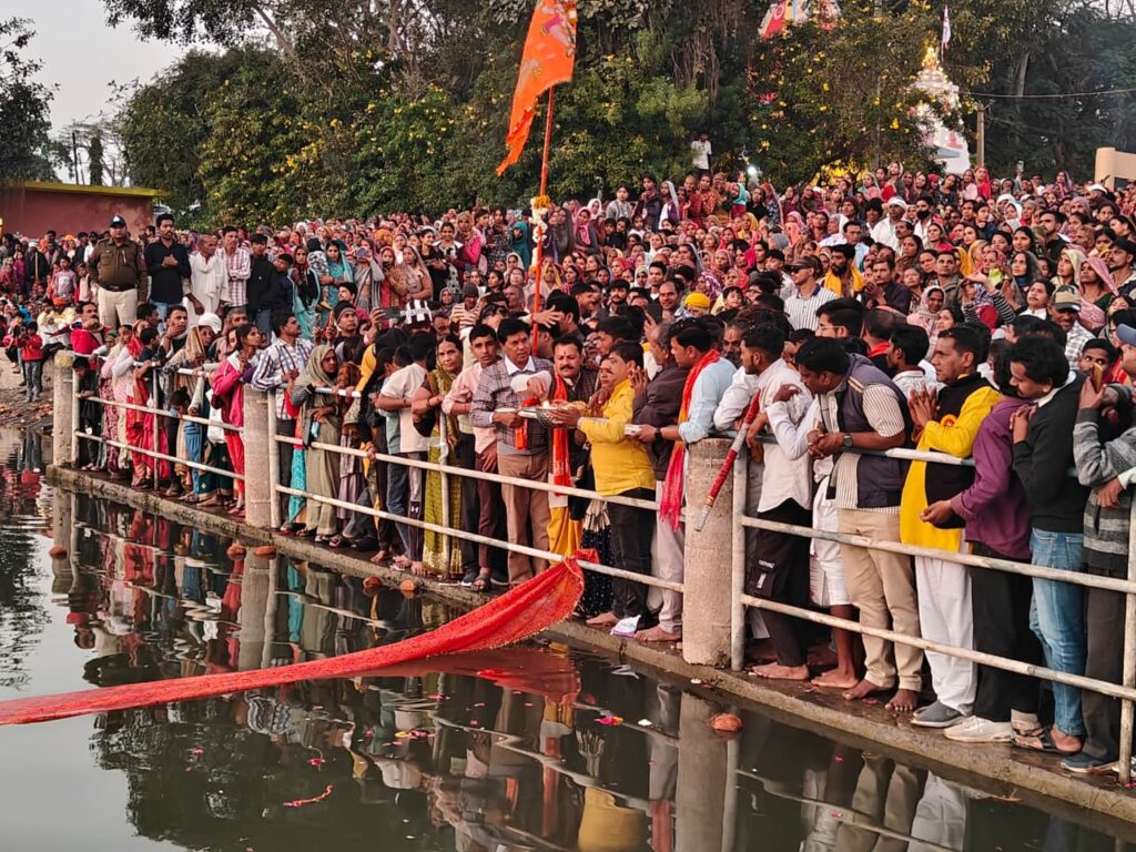 सरदारपुर। क्षेत्र की सबसे बड़ी 29वीं माही पंचक्रोशी पदयात्रा के अंतर्गत बुधवार को चुनरी यात्रा निकालकर मां माही को चुनरी ओढ़ाई गई। यात्रा की शुरुआत सरदारपुर में स्थित माताजी मंदिर से हुई। यहां पं. अजय भट्ट द्वारा मां की चुनरी की पूजा-अर्चना की पश्चात श्रद्धालु हाथों में मां की चुनरी थामें जयकारे लगाते हुए सरदारपुर के मुख्य मार्गों से भ्रमण करते हुए माही तट पहुंचे। यहां पं. राजेश मिश्रा ने विधि-विधान के साथ पुजा अर्चना करवाकर मां की आरती कर मा माही को 151 फीट लंबी चुनरी ओढ़ाई। वही श्रद्धालुओं ने माही नदी में आस्था की डुबकी लगाई।